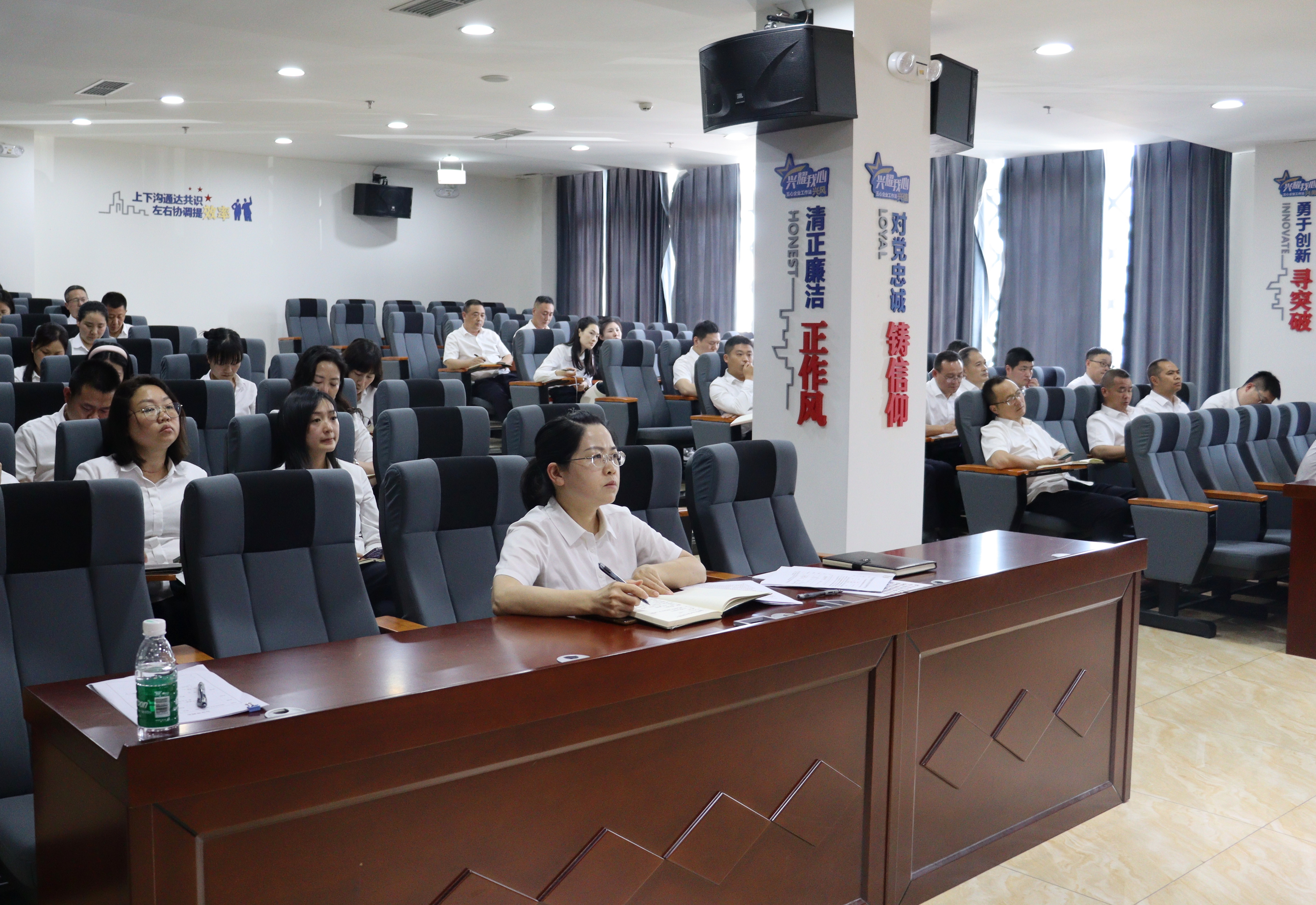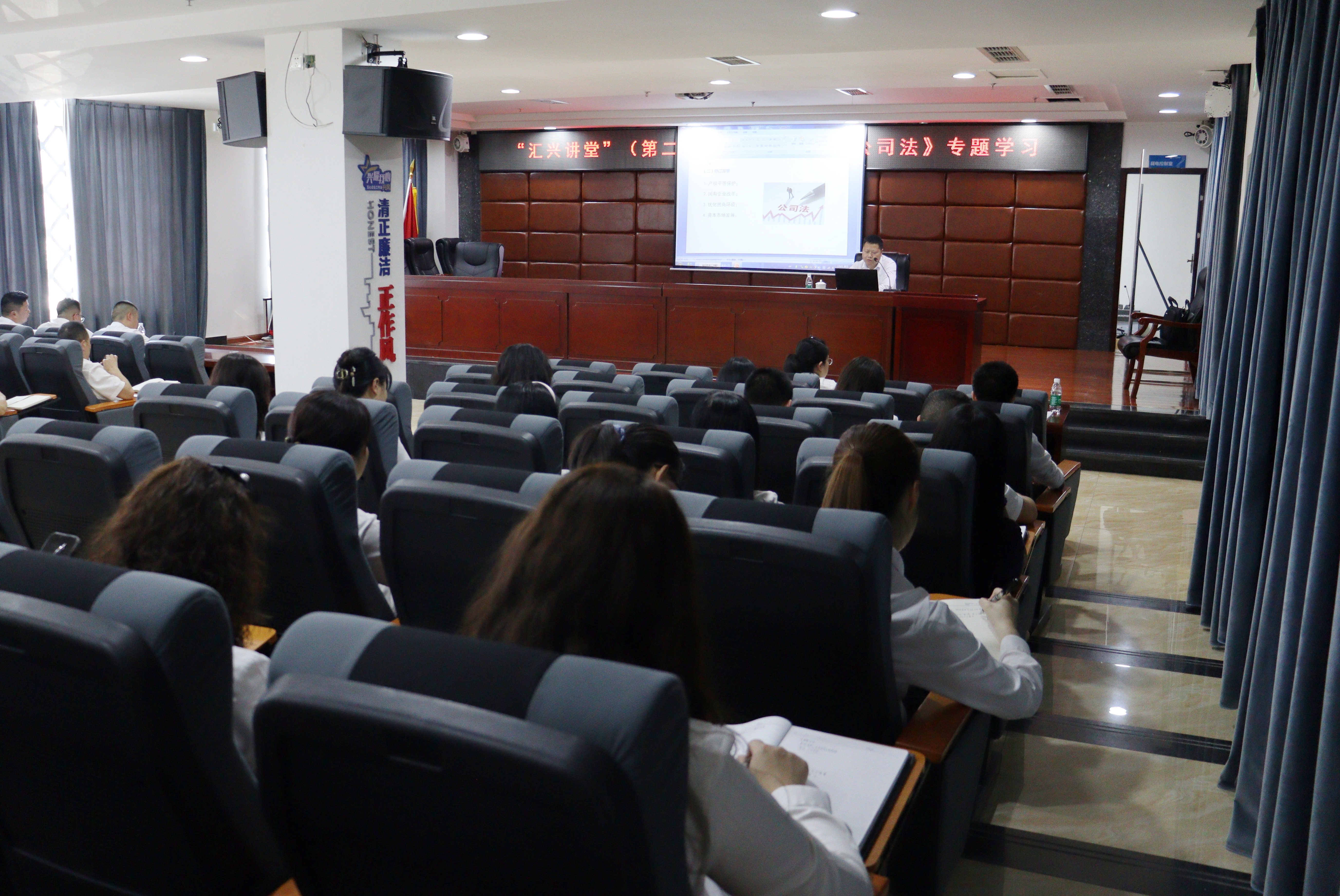 為深入推進(jìn)依法治企,4月26日,集團(tuán)公司在二樓會(huì)議室舉辦“匯興講堂”第二期培訓(xùn)班。此次培訓(xùn)以“新《公司法》專題培訓(xùn)”為主題,由集團(tuán)公司法務(wù)部、紀(jì)檢監(jiān)察審計(jì)部部長(zhǎng)王華主講,總公司及各子公司70余人參加。