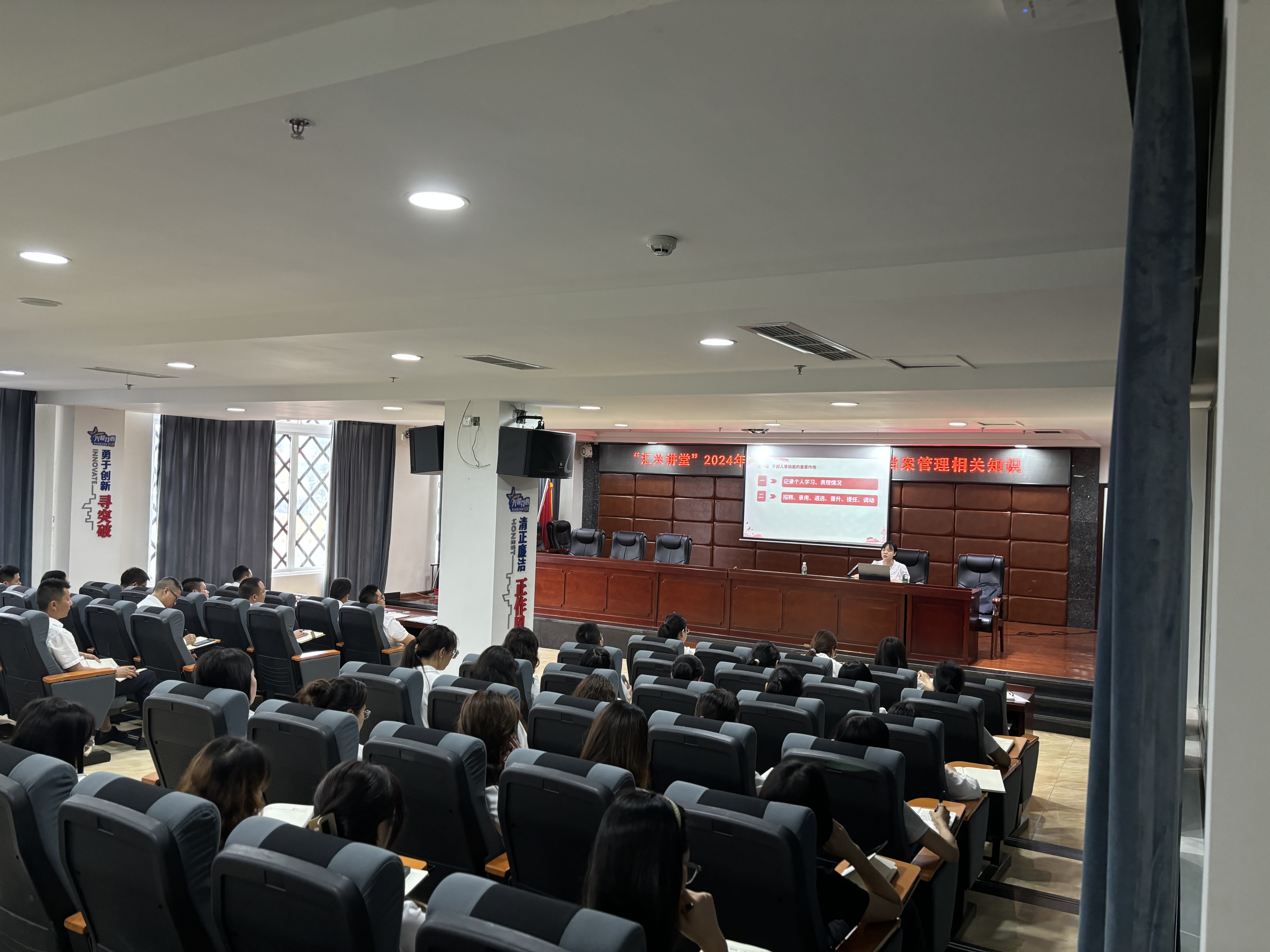 為進(jìn)一步規(guī)范人事檔案管理工作,626日,集團(tuán)公司在二樓會(huì)議室舉辦“匯興講堂”第期培訓(xùn)班。此次培訓(xùn)人事檔案管理知識(shí)”為主題,由縣黨員和干部綜合服務(wù)中心副主任孫小艷主講,總公司及各子公司52人參加。