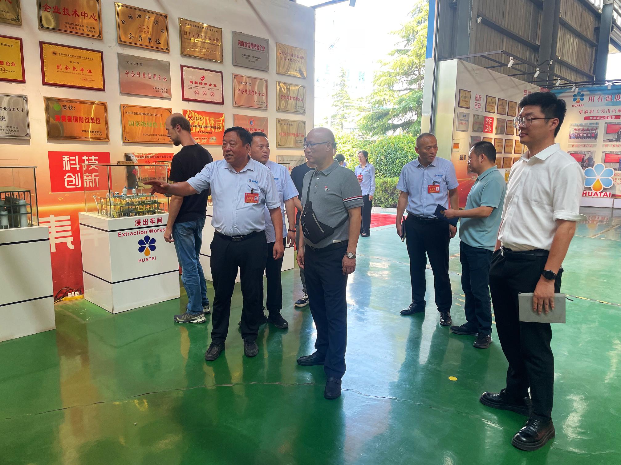 7月29日,集團(tuán)公司副總經(jīng)理、振興集團(tuán)總經(jīng)理?xiàng)钜砺赎?duì),前往河南華泰糧油股份有限公司進(jìn)行考察交流。此次考察聚焦瀘縣糧油加工基地建設(shè),就加工生產(chǎn)線等關(guān)鍵設(shè)備進(jìn)行深入調(diào)研和選型論證??疾靾F(tuán)一行通過(guò)實(shí)地察看、聽(tīng)取介紹、座談交流,詳細(xì)了解先進(jìn)設(shè)備性能與工藝,為瀘縣糧油加工基地的建設(shè)和后續(xù)高效運(yùn)營(yíng)奠定堅(jiān)實(shí)的技術(shù)與設(shè)備基礎(chǔ)。中咨公司、中鐵四院相關(guān)技術(shù)專家,農(nóng)開(kāi)公司相關(guān)人員參加。